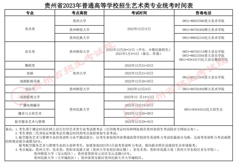 即日起,考生可输入账号和密码登录贵州省普通高校招生考试报名系统网址:http://gkbm.eaagz.org.cn/打印准考证,请考生仔细阅读考生须知,按照规定时间和相关要求到考点高校参加专业统考。