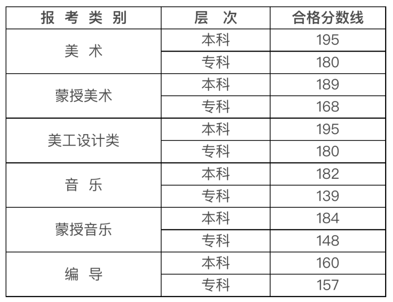 二、2023年内蒙古自治区普通高校招生艺术类统考专业课合格分数线