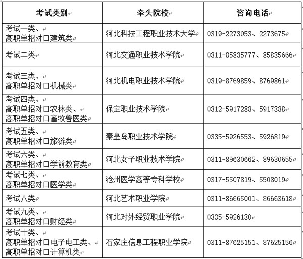 各考试类牵头院校咨询电话: