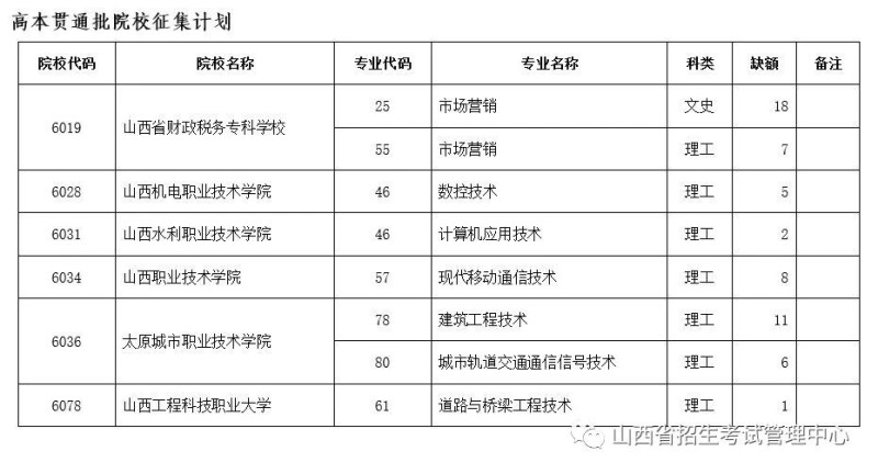 目前,我省高本贯通批院校因生源不足或考生不服从专业调剂退档出现缺额。现予集中公布,公开征集志愿。