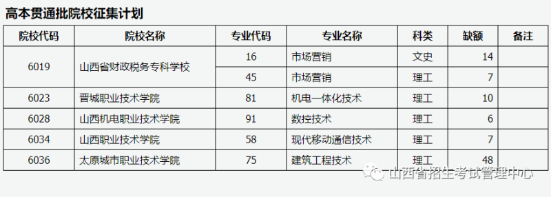 目前,我省高本贯通批院校因生源不足或考生不服从专业调剂退档出现缺额。现予集中公布,公开征集志愿。