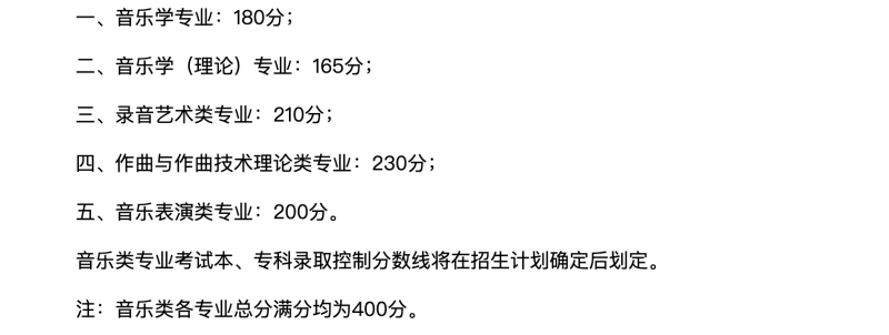 注:音乐类各专业总分满分均为400分。