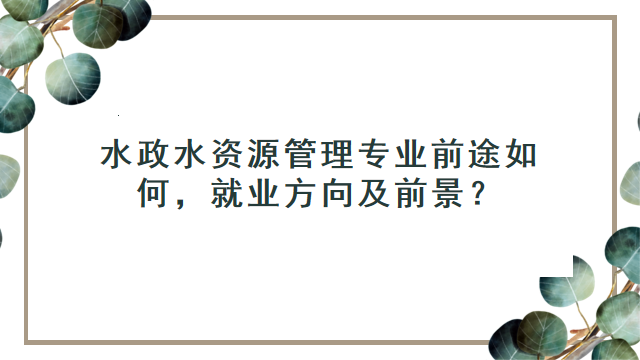水政水资源管理专业是普通高等学校专科专业,其专业代码为450102。目前有很多想选择水政水资源管理专业的高考毕业生好奇水政水资源管理专业有前途吗?水政水资源管理专业能从事什么工作?为了解答大家的疑问,下面考动力小编从两个方面为读者全面分析。