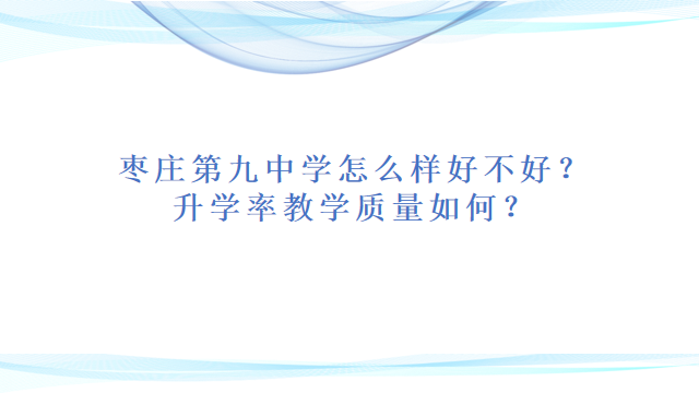 高考是人生的分水岭,许多人越过这道岭就能看见更广阔的世界,而如果越不过这道岭那么就很有可能会让其成为终身的遗憾,人生轨迹可能也会随之改变。这也是为什么有许多家长与同学都希望进入一个好的高中就读学习的原因。在今天考动力小编为大家带来了一个枣庄市的重点中学,叫做枣庄第九中学,那么它的具体情况是怎样的呢?升学率又是多少?接下来就让我们一起来看!